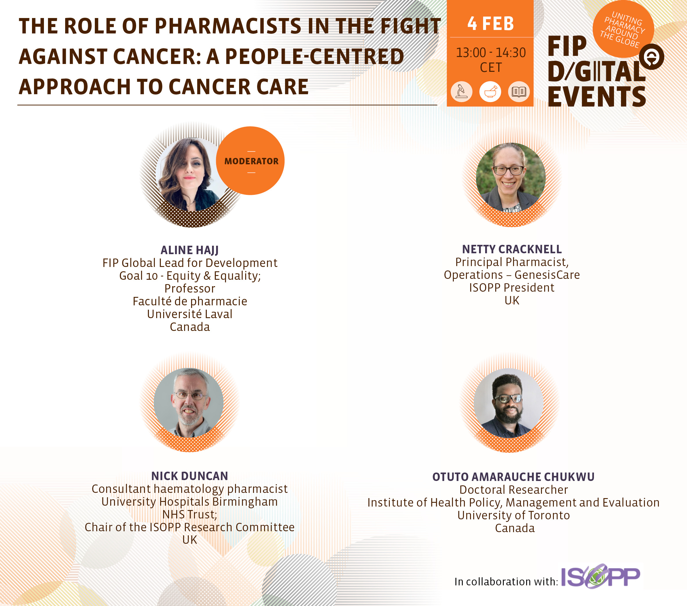 Participants explored global examples of pharmacist-led initiatives that enhance patient outcomes, support safe and reliable cancer treatment, and leverage digital tools to optimise care delivery. The webinar also marked the launch of Series 2 of CPD Bites on cancer care: “The role of pharmacists in supporting patients having cancer treatment”, providing practical tools for pharmacists to apply in daily practice and improve people-centred care. This event was organised in collaboration with ISOPP.