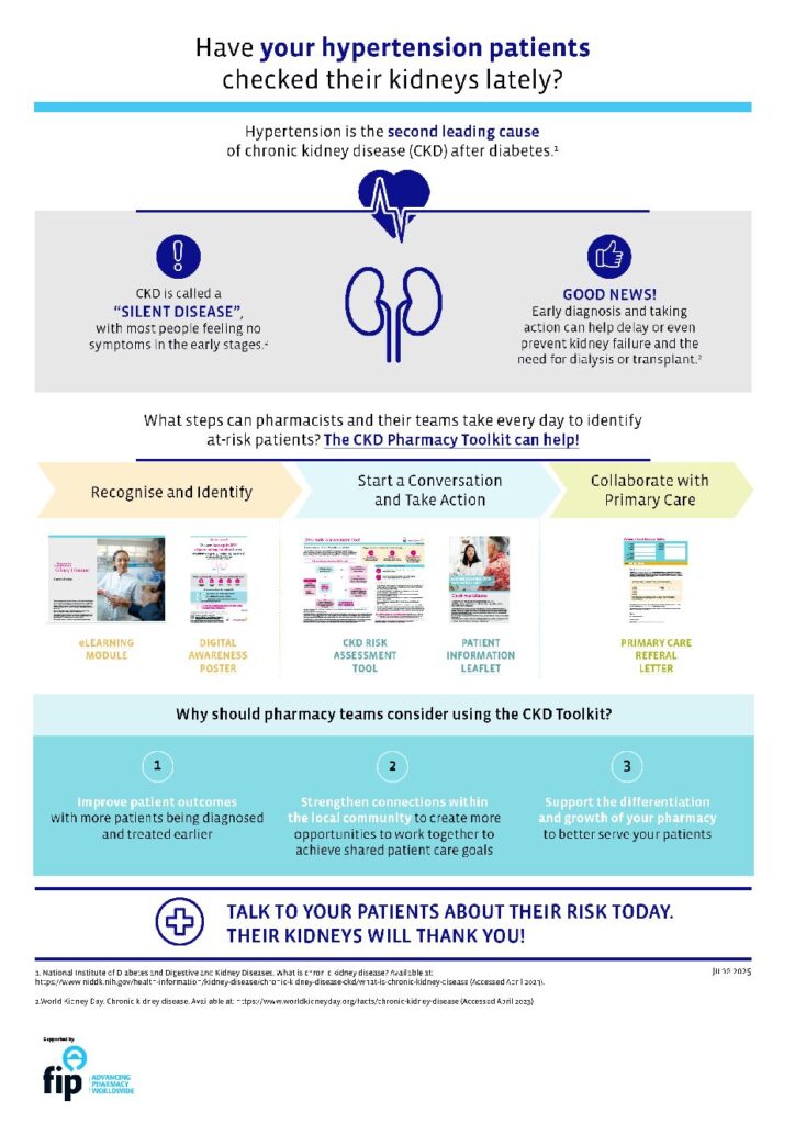 This video offers a brief overview of CKD, its risk factors, and how it relates to other chronic conditions. It also highlights the pharmacist’s role in supporting people at risk of or living with CKD, and presents the CKD Pharmacy Toolkit — a practical resource to guide pharmacy teams in delivering better care.