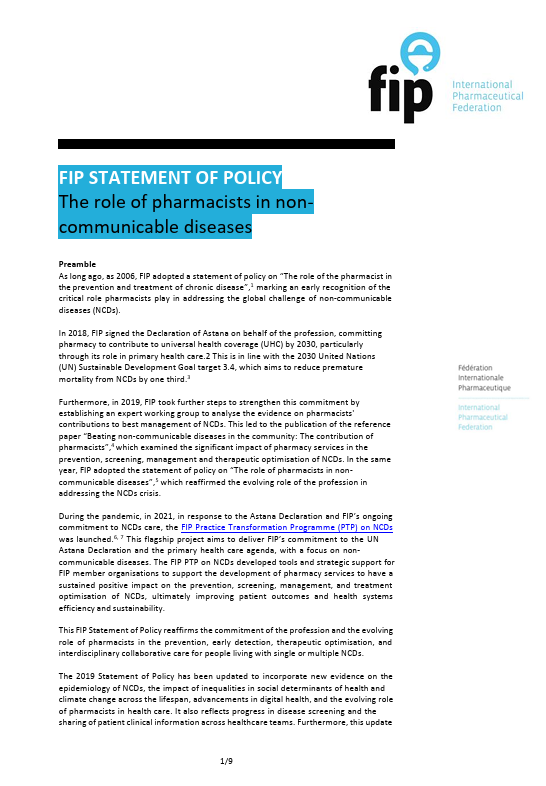 FIP Statement of Policy on the role of pharmacists in non-communicable diseases